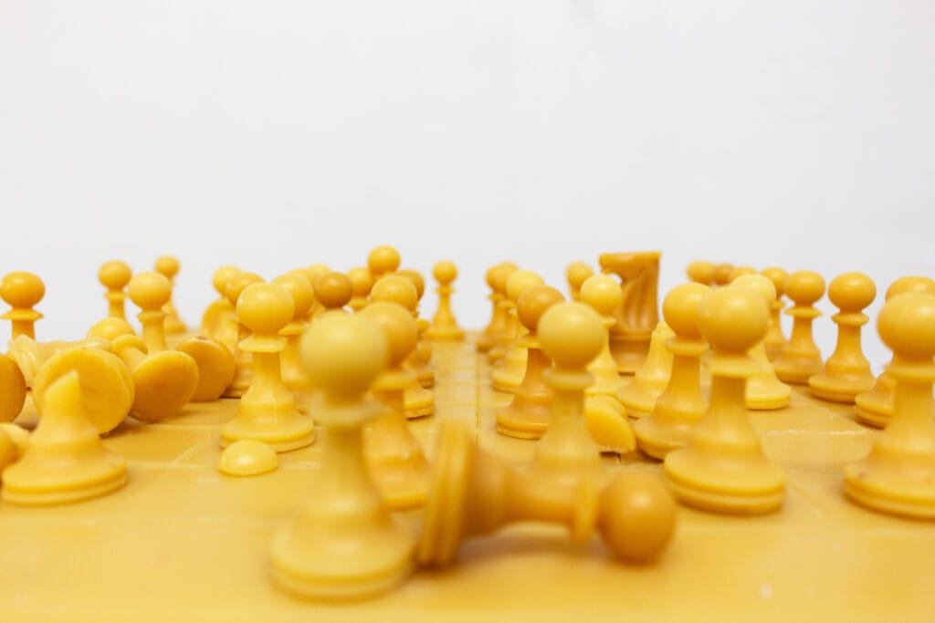 On the first floor of the Isaiah Mansion as part of Back to Athens12 you can see the artwork “Fuzzy Game”. The work deals with the characteristics of modern society, through a chess set, an emblematic symbol of logic and strategy use. In this game, the pawns are made of wax. They have no color or rank, no roles, hierarchies or opposing camps are distinguished. The soldiers fight each other even though they are simultaneously disintegrating. Many are fallen, piled, shapeless – the rivalry is no longer structured or meaningful. It is a phenomenon of decay and ideological dissolution. Who is fighting each other and why? Where are the ranks? What role does the only knight that remains on the field play?