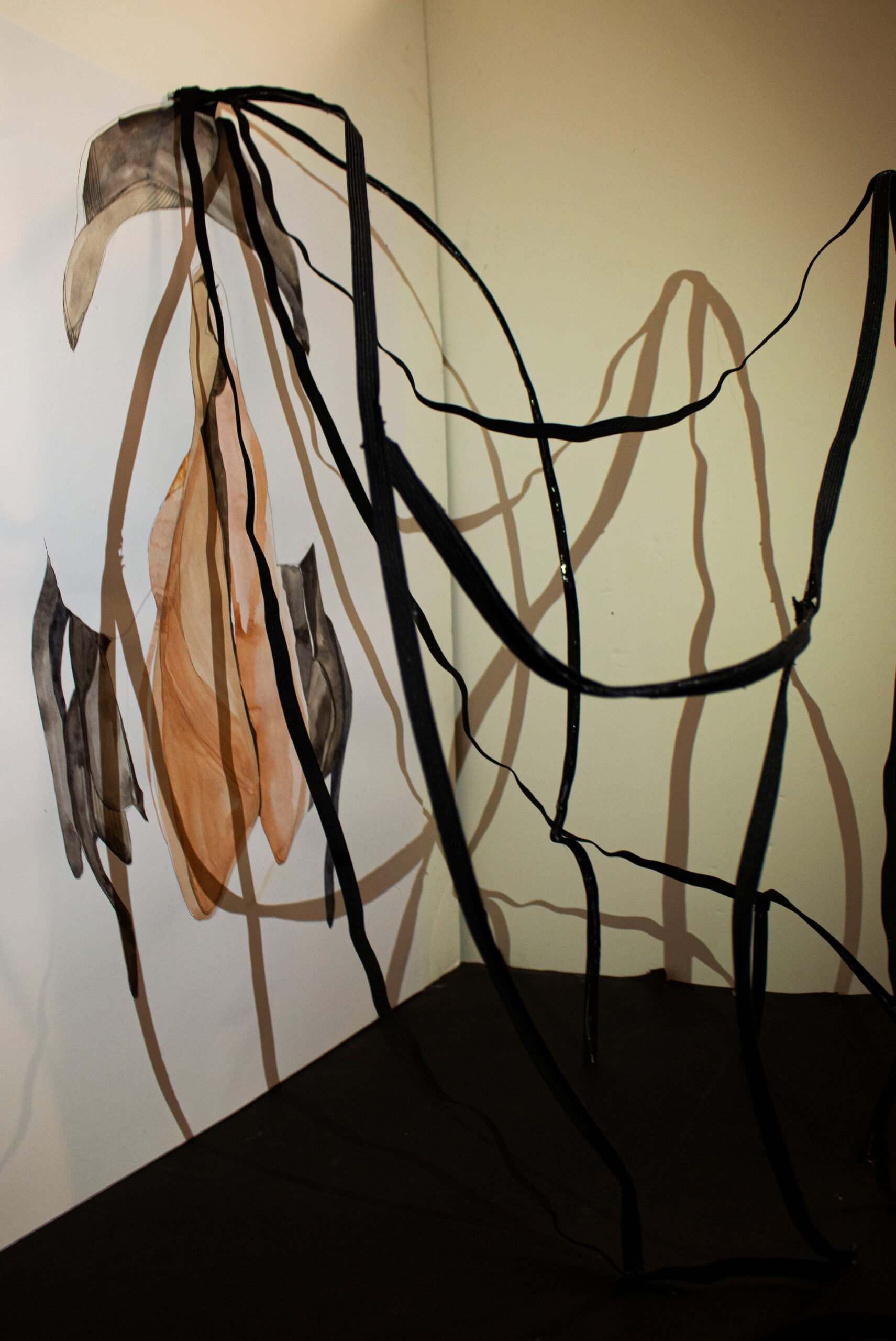 Εγκατάσταση με ζωγραφική, σύρμα, λάστιχα και ύφασμα